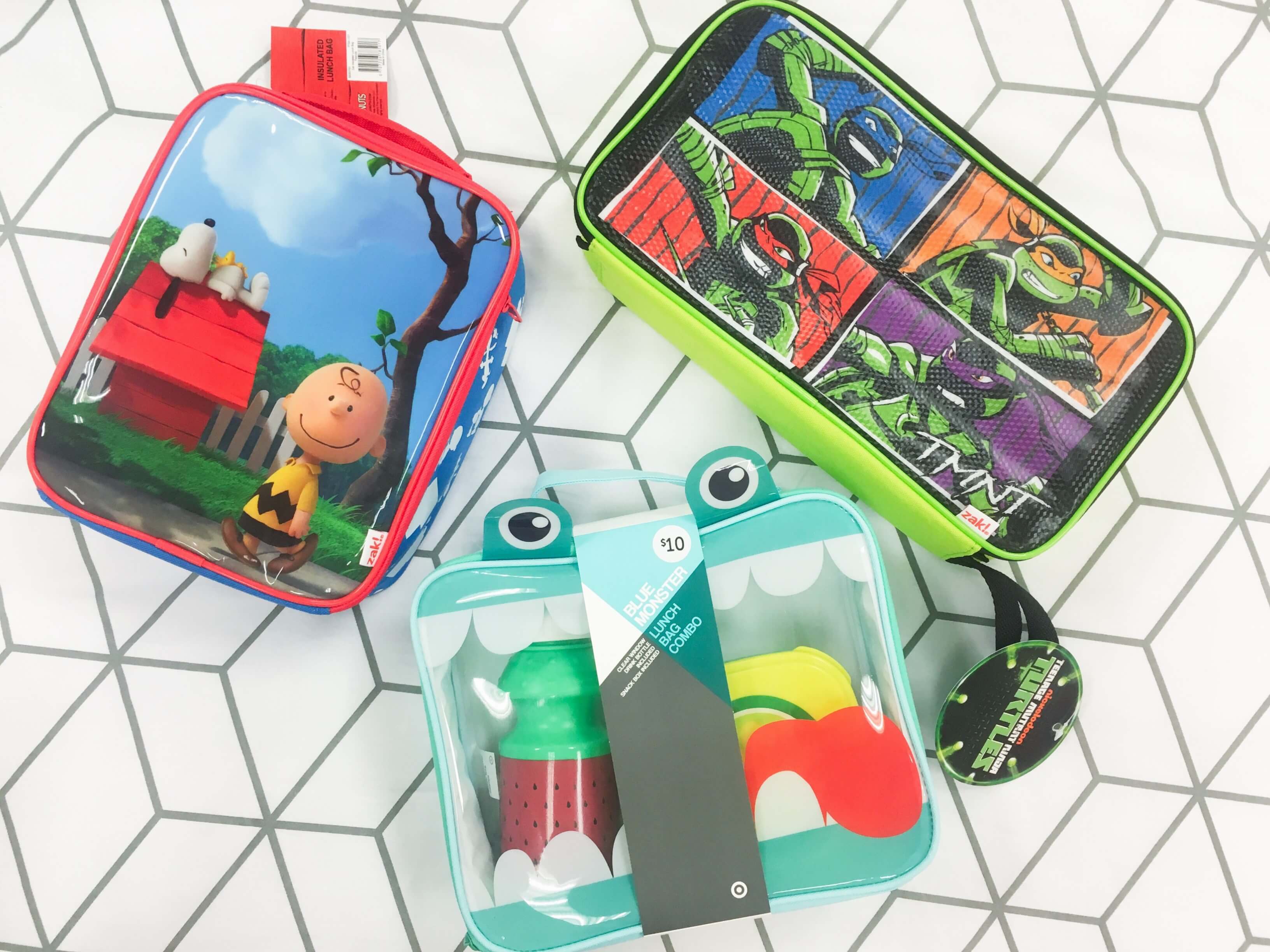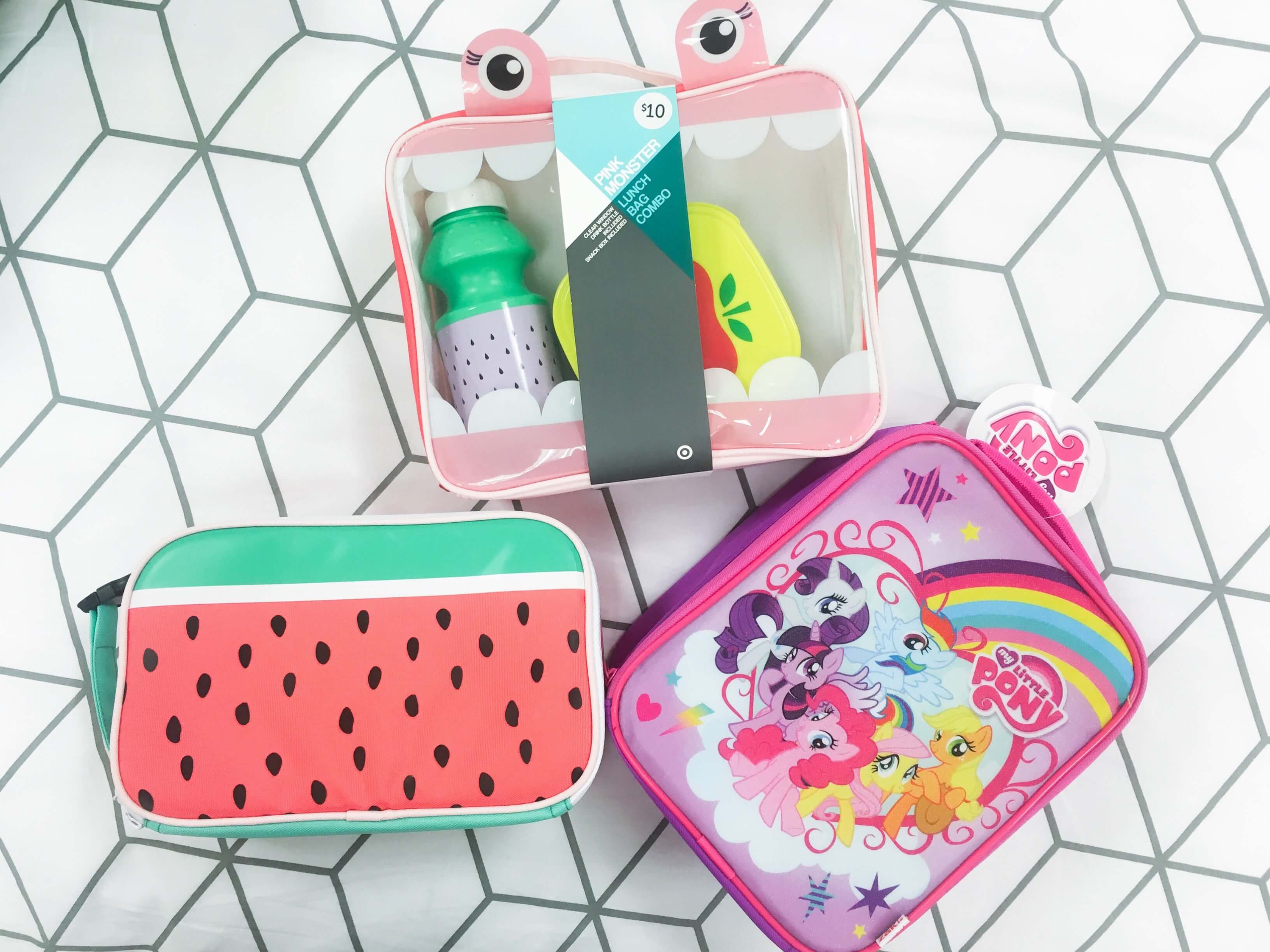 Here's some of my favourite lunch boxes they had at my local Target. There is a big fruit theme this year and I'm loving the watermelon lunch box! Target also has licensed lunch boxes and they are also offering two different variations of their $10 lunch box pack, which comes with a drink bottle and a food container as well. Being only $10 it's great if you're on a budget.