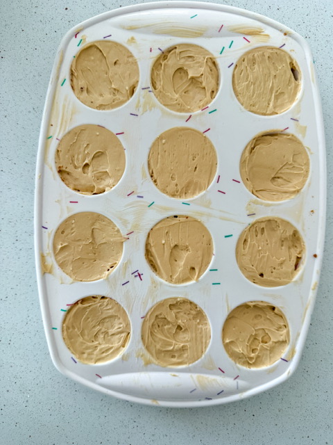 - Put a teaspoon of mixture in each muffin hole and push it down firmly.