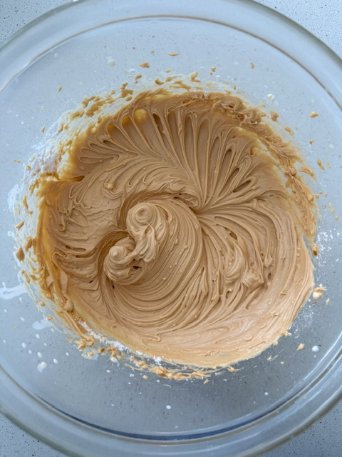 In a bowl, combine room-temperature cream cheese, thickened cream, icing sugar, and Biscoff spread. Beat until smooth and creamy.