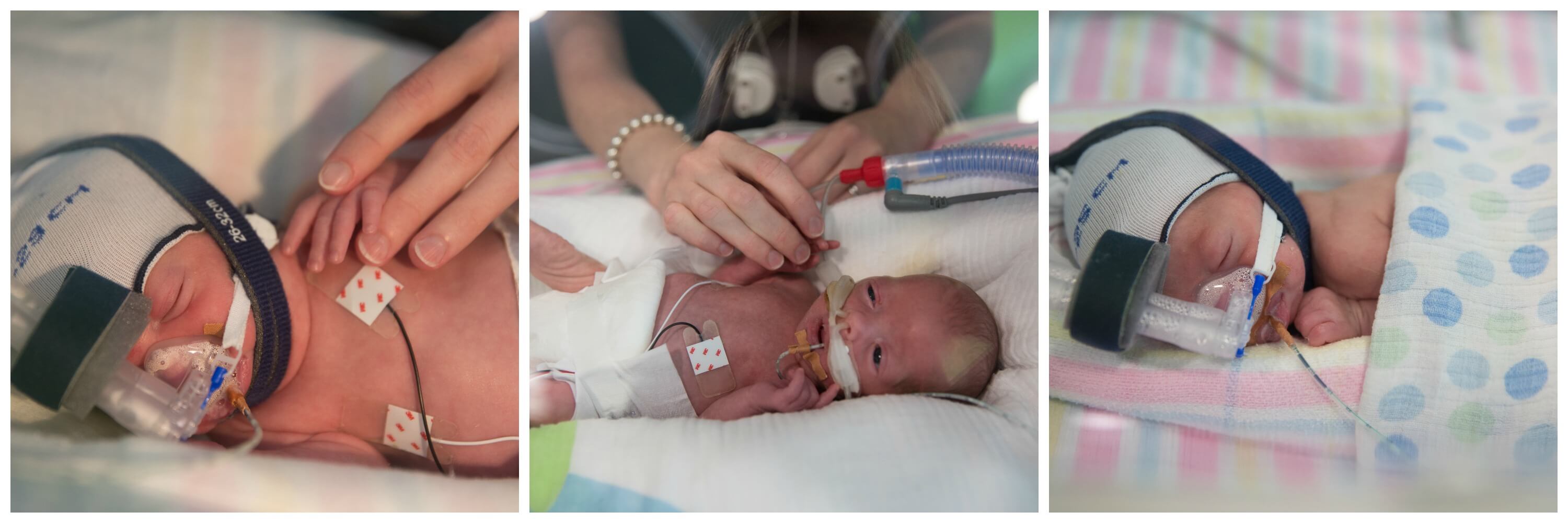 I was flown to Canberra hospital and my husband followed in the car. I was admitted, monitored constantly and given steroids to try to delay labour. I had no idea how long I was going to be there as labour could begin at any moment. 48 hours later, I went into labour. We were absolutely terrified as we know that it was way too early for the bubs to be born. My 34 weeks caesarian had turned into a 27 week natural birth! I was in labour for three hours when Patrick arrived. Their delivery room was full of about 20 doctors and nurses and we were absolutely terrified as they took Patrick up to the NICU. Another four hours of labour and the girls were both born breech, Sophie with her caul still intact, three minutes apart.