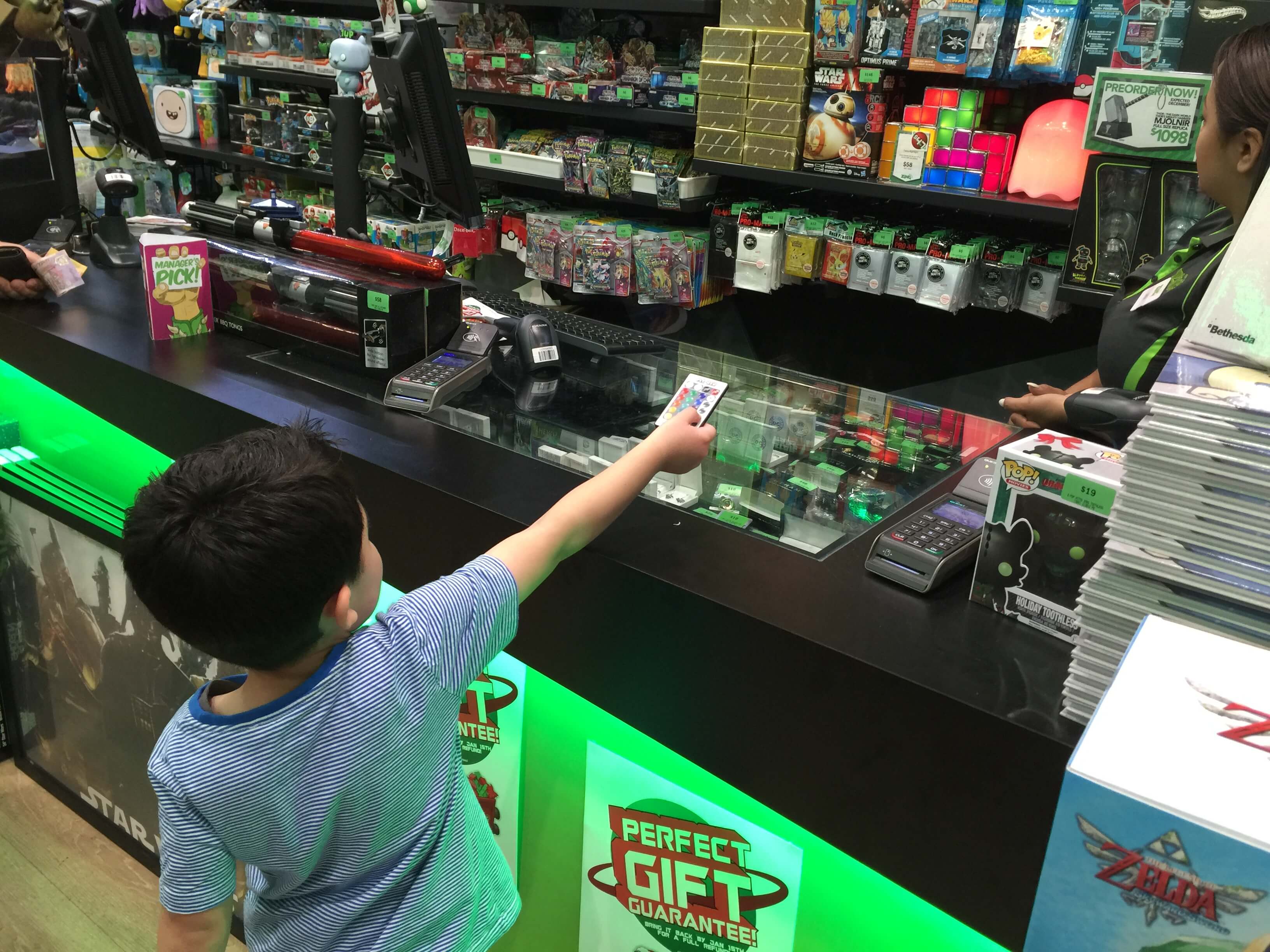 The staff knew their products and genres really well, and the layout of the store was easy to navigate. The lovely Sales Assistants even took the time to show Ayden how to work a few of the toys and products that he was really interested in, and let him test them out in store. There were lots of “Mum this is AWESOME!” and “This is so COOL!”.